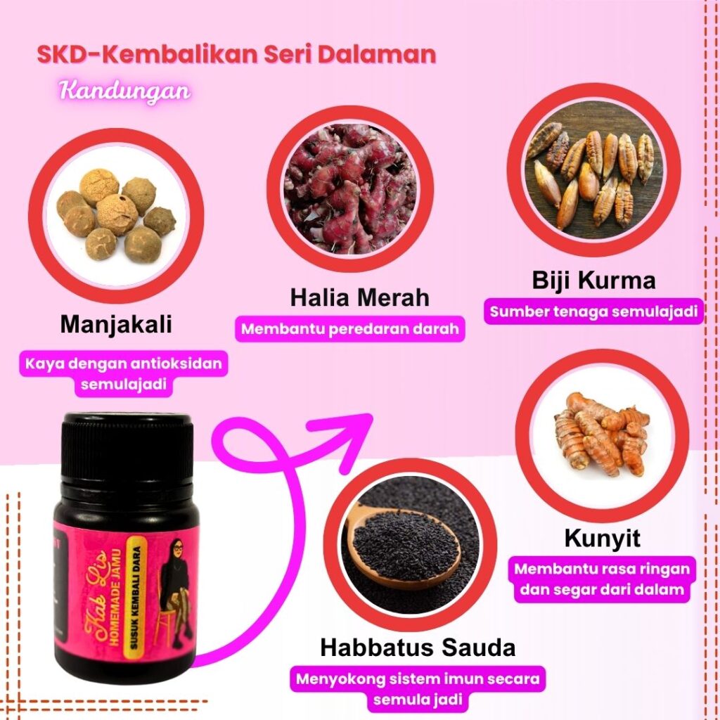 Diformulasi dengan gabungan herba asli terpilih seperti Manjakani (untuk keanjalan dan kesihatan dalaman), Halia Merah (untuk kehangatan dan buang angin), Biji Kurma (sumber tenaga dan nutrisi), dan Habbatus Sauda (untuk pelbagai khasiat kesihatan menyeluruh).
